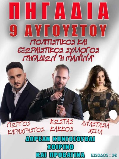 Μια ξεχωριστή παραδοσιακή βραδιά ετοιμάζει ο Πολιτιστικός και Εξωραϊστικός Σύλλογος Πηγάδιων «Η ΜΑΝΙΝΑ», το Σάββατο 9 Αυγούστου, στα Πηγάδια Ξηρομέρου.