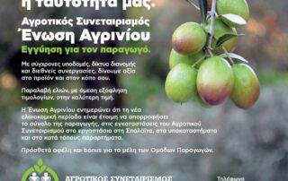 ΕΝΩΣΗ ΑΓΡΙΝΙΟΥ: Στη δημοσιότητα ο τιμοκατάλογος αγοράς ΠΡΑΣΙΝΗΣ ΕΛΙΑΣ