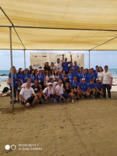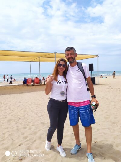 Η Αντιδήμαρχος Μεσολογγίου, Μέμη Γούργαρη με στον δρομέα Μιχάλη Πλαστήρα μετά τον τερματισμό του στον ημιμαραθώνιο των 21 Km στην παραλία του Λούρου