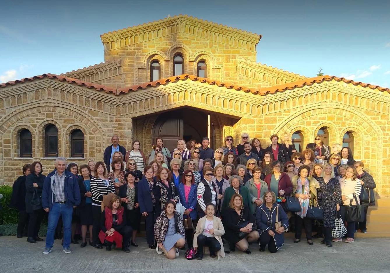 Με την άφιξη στο Μοναστήρι τους περιηγητές υποδέχθηκαν οι μοναχές στην είσοδο από τις κατακόμβες, όπου και ξεναγήθηκαν, ενώ στη συνέχεια οδηγήθηκαν στο Αρχονταρίκι όπου προσφέρθηκαν γλυκά και καφές. Τα μέλη του Συλλόγου περιηγήθηκαν στον περιβάλλοντα χώρο της Μονής, άκουσαν την ιστορία για την ίδρυση και λειτουργία της και στη συνέχεια παρακολούθησαν τους Γ’ Χαιρετισμούς.