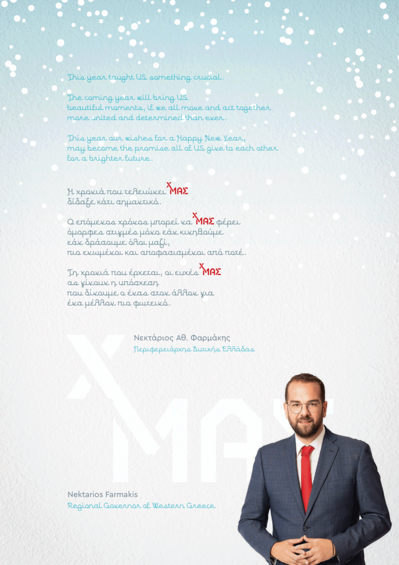 Οι χριστουγεννιάτικες ευχές του Νεκτάριου Φαρμάκη Κοινοποιήστε:Post Click to share on Threads(Ανοίγει σε νέο παράθυρο) Threads Κλικ για αποστολή ενός συνδέσμου μέσω email σε έναν/μία φίλο/η(Ανοίγει σε νέο παράθυρο) Email Πατήστε για να μοιραστείτε στο WhatsApp(Ανοίγει σε νέο παράθυρο) WhatsApp Κλικ για εκτύπωση(Ανοίγει σε νέο παράθυρο) Εκτύπωση By MessolonghiNews|2020-12-25T17:32:35+02:0025 Δεκεμβρίου, 2020|Κοινωνία, Περιφερειακά Νέα| Μοιραστείτε αυτό το άρθρο. FacebookXLinkedInWhatsAppEmail About the Author: MessolonghiNews Σχετικά Άρθρα Προκήρυξη για το Μαθητικό Φεστιβάλ Θεάτρου για τα 200 χρόνια από την Έξοδο του Μεσολογγίου Gallery Προκήρυξη για το Μαθητικό Φεστιβάλ Θεάτρου για τα 200 χρόνια από την Έξοδο του Μεσολογγίου Μεσολόγγι: «Ενδυναμώνοντας τη ζωή μέσα από τη δράση» – Εκδήλωση της Σ.Α.Ε.Κ. και της Ε.Ψ.Υ.Π.Ε.Α. για την Παγκόσμια Ημέρα Εργοθεραπείας Gallery Μεσολόγγι: «Ενδυναμώνοντας τη ζωή μέσα από τη δράση» – Εκδήλωση της Σ.Α.Ε.Κ. και της Ε.Ψ.Υ.Π.Ε.Α. για την Παγκόσμια Ημέρα Εργοθεραπείας Η Περιφέρεια Δυτικής Ελλάδας στην Marathon Expo 2025 Gallery Η Περιφέρεια Δυτικής Ελλάδας στην Marathon Expo 2025 Χωρίς νερό η Βόνιτσα και το Μοναστηράκι – Εκτεταμένες ζημιές σε υποδομές από τη σφοδρή κακοκαιρία Gallery Χωρίς νερό η Βόνιτσα και το Μοναστηράκι – Εκτεταμένες ζημιές σε υποδομές από τη σφοδρή κακοκαιρία Συλλήψεις σε Πάτρα και Ηλεία για κλοπές, μέθη και εκκρεμές ένταλμα Gallery Συλλήψεις σε Πάτρα και Ηλεία για κλοπές, μέθη και εκκρεμές ένταλμα