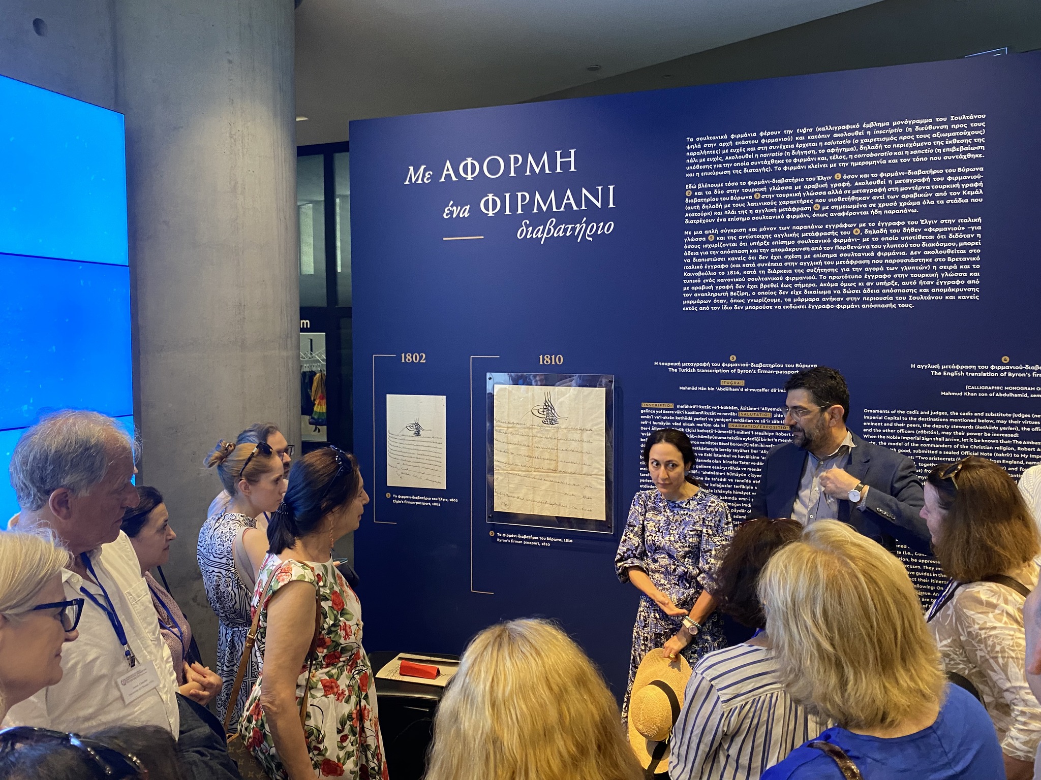 Ακολούθως οι σύνεδροι επισκέφτηκαν στο Μουσείο της Ακρόπολης την περιοδική έκθεση για το διαβατήριο του Βύρωνα, ένα πραγματικό σουλτανικό φιρμάνι, που του επέτρεπε να ταξιδέψει στα εδάφη της Οθωμανικής Αυτοκρατορίας.