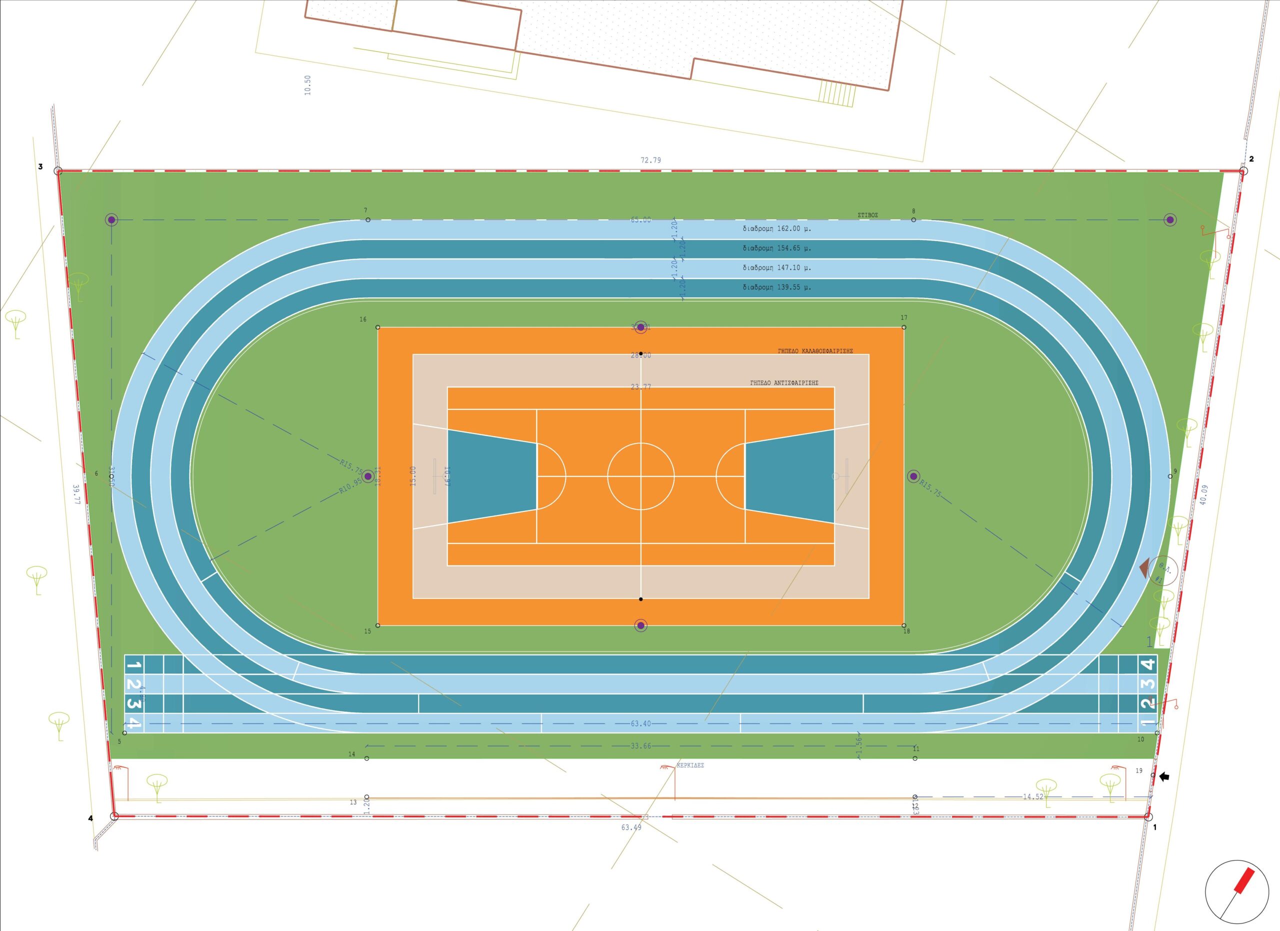 Το έργο, βάσει της μελέτης που έχει εκπονηθεί, εκτός της τοποθέτησης αθλητικού ελαστικού τάπητα τύπου ταρτάν, περιλαμβάνει την κατασκευή γηπέδων καλαθοσφαίρισης και αντισφαίρισης, καθώς επίσης και μεταλλικής εξωτερικής περίφραξης.