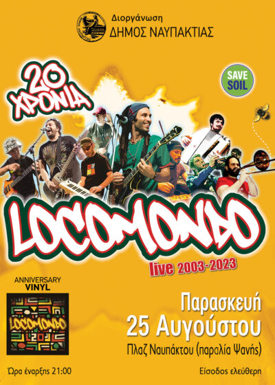 Ο Δήμος Ναυπακτίας σας προσκαλεί την Παρασκευή, 25 Αυγούστου και ώρα 21:00’ στην παραλία Ψανής, στο μεγαλύτερο πάρτυ με τους Locomondo που γιορτάζουν!
