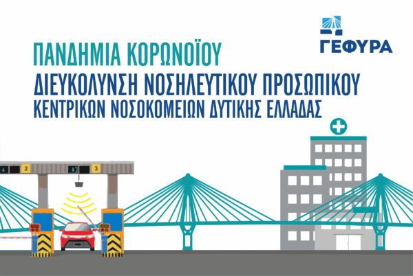 Κατά το πρώτο κύμα της πανδημίας COVID-19 και προκειμένου να μη διακυβευθούν όσα ορίζει η σύμβαση παραχώρησης για την υποχρεωτική καταβολή διοδίων -εκτός των νομίμως προβλεπομένων εξαιρέσεων- η ΓΕΦΥΡΑ Α.Ε. διέθεσε όλα τα κεφάλαια του προϋπολογισμού εταιρικής κοινωνικής ευθύνης, όπως αυτός είχε διαμορφωθεί πριν την κρίση, προκειμένου να χρηματοδοτηθεί η δωρεάν διέλευση του υπηρεσιακώς υποδεδειγμένου νοσηλευτικού προσωπικού των τριών δημόσιων νοσοκομείων της Πάτρας (Π.Γ.Ν. Πατρών, Γ.Ν. «Άγιος Ανδρέας» και Καραμανδάνειο) το οποίο διαμένει στην Π.Ε. Αιτωλοακαρνανίας και χρησιμοποιεί τη Γέφυρα «Χαρίλαος Τρικούπης» καθ’ οδόν προς και από τον χώρο επιτέλεσης του λειτουργήματός του.