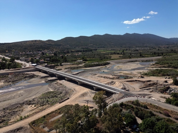 Ο κ. Σταϊκούρας συμπλήρωσε ότι η νέα γέφυρα κατασκευάστηκε μέσα σε έναν χρόνο, στο ίδιο σημείο με την παλαιά, αλλά με τις πιο σύγχρονες προδιαγραφές ανθεκτικότητας, ενώ στο έργο προβλέπεται η ανακατασκευή όλων των αναγκαίων υδραυλικών έργων προστασίας των βάθρων και διευθέτησης του ποταμού για την αντιπλημμυρική προστασία της περιοχής.