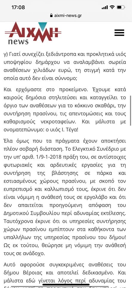 “Εν μέσω κορονοϊού και φόβου για τα αγαπημένα μας πρόσωπα αλλά ακόμη και για εμάς τους ίδιους και τα παιδιά μας, ο δήμαρχος μας βρήκε τον χρόνο αλλά και την ευκαιρία να σαρώσει κυριολεκτικά και να προχωρήσει σε απευθείας αναθέσει, όπου αξιοζήλευτο είναι ότι σε κάποιες περιπτώσεις δεν προχωρά ούτε σε «πρόσκληση ενδιαφέροντος»!!!