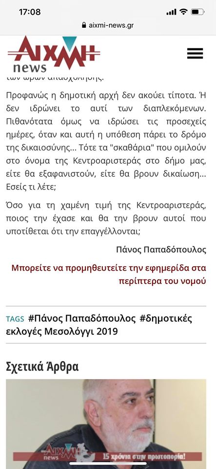 Ο συνεργάτης του δημοτικός σύμβουλος άλλης παράταξης έχασε την λαλιά του!!!
