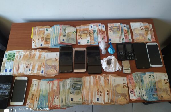 Κατασχέθηκαν περίπου (15.000) ευρώ, μικροποσότητες ναρκωτικών ουσιών, έξι οχήματα και πλήθος κινητών τηλεφώνων