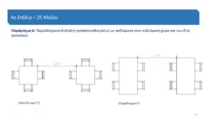 2. Πως θα επαναλειτουργήσει η εστίαση – Αναλυτικά παραδείγματα για τη διάταξη και τον αριθμό των τραπεζοκαθισμάτων (VIDEO)