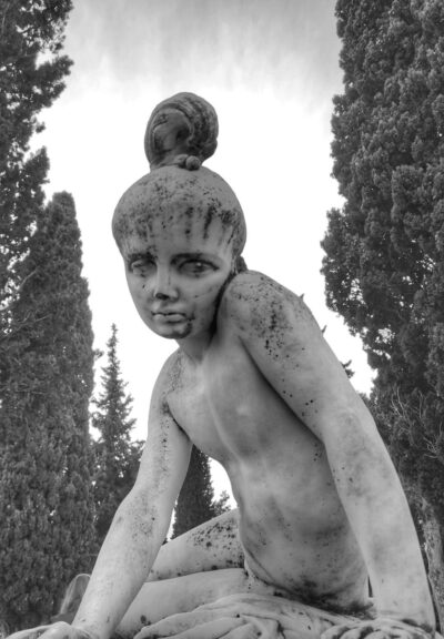 “Με θλίβει και ταυτόχρονα μου δημιουργεί ενέργεια για δράση αυτή η εικόνα. Ένα από τα πιο ωραία αγάλματα στο Κήπο των Ηρώων – “Η κόρης της Ελλάδας” μνημείο Μάρκου Μπότσαρη του David d’Angers (Γάλλος γλύπτης) – φαγωμένο από το πέρασμα του χρόνου. Ασυντήρητο!