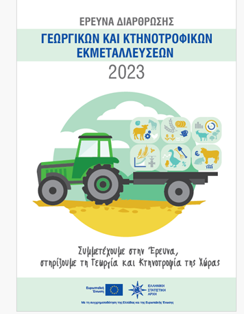 Η Ελληνική Στατιστική Αρχή (ΕΛ.ΣΤΑΤ.) κατά το χρονικό διάστημα Φεβρουαρίου – Μαρτίου 2024 διενεργεί την Έρευνα Διάρθρωσης Γεωργικών και Κτηνοτροφικών Εκμεταλλεύσεων, έτους 2023 με ηλεκτρονικό ερωτηματολόγιο.