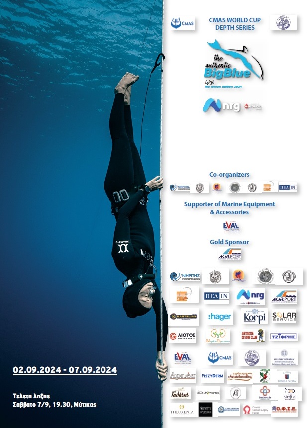 Οι δύο διοργανώσεις θα λάβουν χώρα σε σημεία με ιδανικές συνθήκες για μεγάλες επιδόσεις: το Παγκόσμιο Κύπελλο CMAS World Cup Depth Series, θα διεξαχθεί από 2 έως 7 Σεπτεμβρίου 2024 στο πανέμορφο σημείο μεταξύ Καλάμου Λευκάδας, Μεγανησίου, και Παλαίρου, ενώ τη δράση εκτός θάλασσας θα φιλοξενήσει ο γραφικός Μύτικας Αιτωλοακαρνανίας.