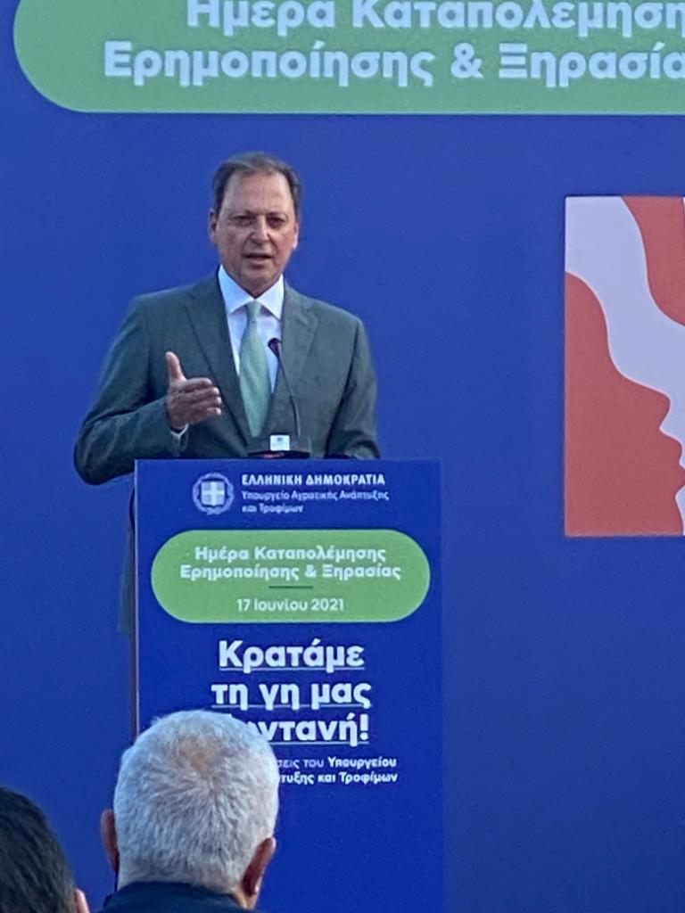 Υπενθυμίζεται ότι στην εκδήλωσε ο ΥπΑΑΤ κ. Σπήλιος Λιβανός τίμησε για την προσφορά του τον πρώτο Πρόεδρο της Επιτροπής κατά της Ερημοποίησης, Ομότιμο Καθηγητή του Γεωπονικού Πανεπιστημίου, κ. Νικόλαο Γιάσογλου.