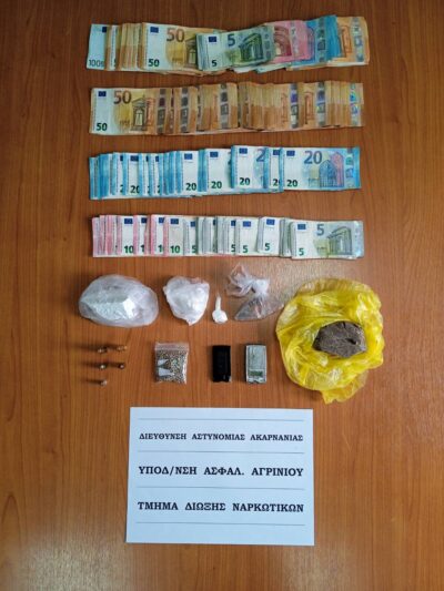 Ειδικότερα, οι αστυνομικοί του Τμήματος Δίωξης Ναρκωτικών της Υποδιεύθυνσης Ασφάλειας Αγρινίου, αξιοποιώντας πληροφορίες, εντόπισαν τον έναν άνδρα να οδηγεί αυτοκίνητο και σε έλεγχο που του ενήργησαν, βρήκαν στην κατοχή του και κατάσχεσαν 4.095 ευρώ και ένα κινητό τηλέφωνο, ενώ σε έρευνα που ακολούθησε σε κατάστημά του, οι αστυνομικοί βρήκαν και κατάσχεσαν: