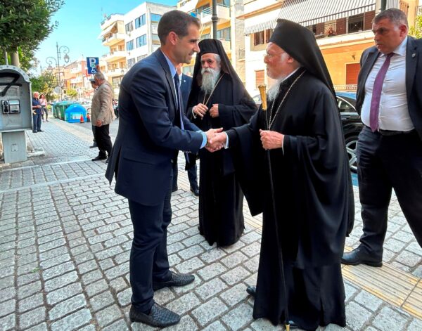 Το Διοικητήριο της Περιφερειακής Ενότητας Ηλείας στον Πύργο, επισκέφθηκε σήμερα, Κυριακή 3 Σεπτεμβρίου 2023, ο Οικουμενικός Πατριάρχης Βαρθολομαίος, όπου τον υποδέχθηκαν ο Περιφερειάρχης Δυτικής Ελλάδας Νεκτάριος Φαρμάκης και ο Αντιπεριφερειάρχης Π.Ε. Ηλείας Βασίλης Γιαννόπουλος, στο πλαίσιο της επίσημης επίσκεψής του στην Ηλεία και στους Δήμους Πύργου και Ανδραβίδας – Κυλλήνης, όπου αναγορεύτηκε Επίτιμος Δημότης.