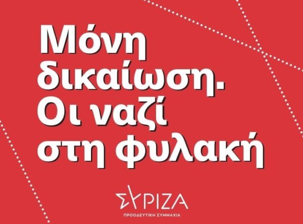 “Την Τετάρτη 7 Οκτωβρίου το Τριμελές Εφετείο Κακουργημάτων θα ανακοινώσει την απόφαση για τη ναζιστική εγκληματική οργάνωση της Χρυσής Αυγής. Η καταδίκη της πρέπει να είναι συνολική. Με μια καταδικαστική απόφαση θα γίνει πράξη το ότι σε μια δημοκρατική κοινωνία οι φασιστικές, ναζιστικές πρακτικές δεν έχουν καμία νομιμοποίηση.
