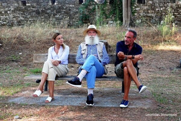 Ο Λεωνίδας Στούμπος ανάμεσα από την Ίνα Ταράντου και τον Νίκο Αλιάγα στα γυρίσματα της εκπομπής