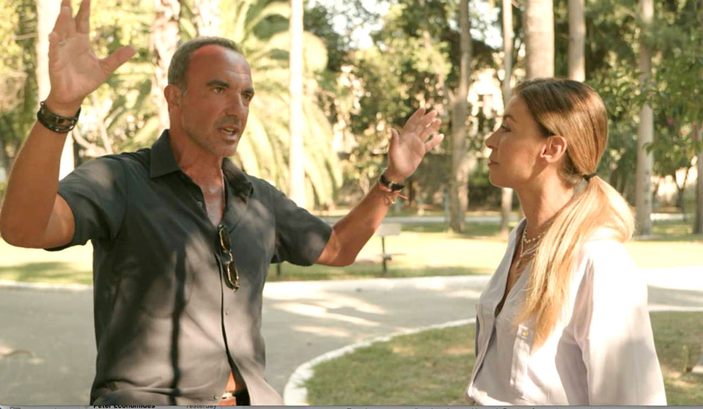 Ο Λεωνίδας Στούμπος ανάμεσα από την Ίνα Ταράντου και τον Νίκο Αλιάγα στα γυρίσματα της εκπομπής