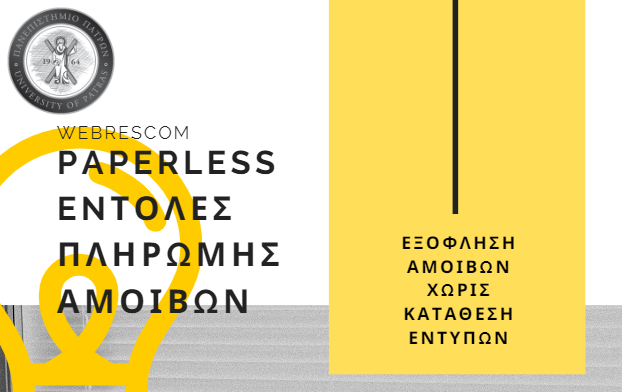 Η ΜΟΔΥ ΕΛΚΕ, ενεργοποίησε στις 22.02.2022, μια νέα λειτουργικότητα του web-resCom με χρονοσφραγίδα στις εντολές πληρωμής αμοιβών (όλων των κατηγοριών), με αποτέλεσμα να μην απαιτείται πλέον η έντυπη υποβολή των εντολών αμοιβών που καταχωρούνται μέσω του web-resCom. Στο πλαίσιο παροχής ολοκληρωμένων ψηφιακών υπηρεσιών, υλοποιήθηκε εφαρμογή υποβολής τιμολογίων ερευνητών, για τις περιπτώσεις όπου απαιτείται η έκδοσή τους (https://era.upatras.gr/). Με την ενεργοποίηση α) της νέας λειτουργικότητας και β) της υπογραφής μέσω του GOV.GR καθώς και με τον εξορθολογισμό των αρμοδιοτήτων του προσωπικού των μονάδων παρακολούθησης έργων, την εξοικονόμηση χρόνου κατά τον έλεγχο των εντολών αμοιβών επιτεύχθηκε η μείωση του χρόνου έγκρισης μιας ονομαστικής κατάστασης και υπογραφής σύμβασης σε 10 ημέρες. Περισσότερες πληροφορίες σχετικά με τη νέα λειτουργικότητα είναι διαθέσιμες στη σελίδα του ΕΛΚΕ (https://research.upatras.gr/web-rescom-paperless-entoles-pliromis-amoivwn/).