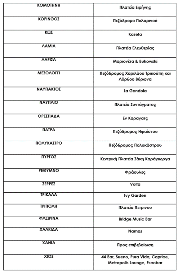 Οι πόλεις που συμμετέχουν και τα σημεία της δράσης για το 2020 είναι: