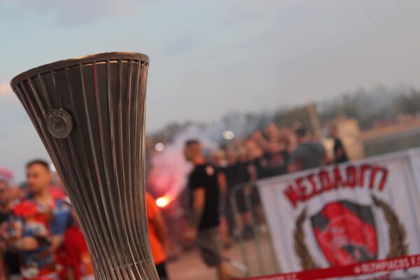 Εκατοντάδες φίλαθλοι του Ολυμπιακού σε μια ατμόσφαιρα χαράς και ενθουσιασμού υποδέχθηκαν στο λιμάνι του Μεσολογγίου τα δυο ευρωπαϊκά τρόπαια του συλλόγου.