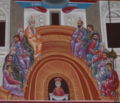 Εορτάζουμε λαμπρώς όλη αυτή την περίοδο του Πεντηκοσταρίου, τις μεγάλες και δεσποτικές εορτές του Πάσχα, της Αναλήψεως του Κυρίου και τελευταία την εορτή της Πεντηκοστής, τιμώντας ιδιαιτέρως το τρίτο πρόσωπο της αγίας Τριάδος, το Πανάγιον Πνεύμα.