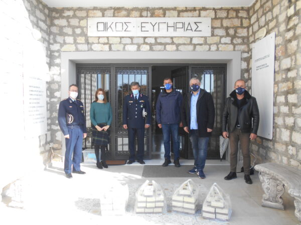 Έτσι στο Σελίβειο Γηροκομείο Μεσολογγίου ο αστυνομικός διευθυντής Αιτωλίας, Ταξίαρχος Ιωάννης Νταλαχάνης, με τον αστυνομικό διευθυντή, Νίκο Νικολάου και τον προεδρείο της Ένωσης Αστυνομικών Υπαλλήλων αντάλλαξε ευχές με τη διευθύντρια του ιδρύματος, Ρούλα Κουτσαγγέλη προσφέροντας γλυκά και εδέσματα για τους φιλοξενούμενους στη δομή.