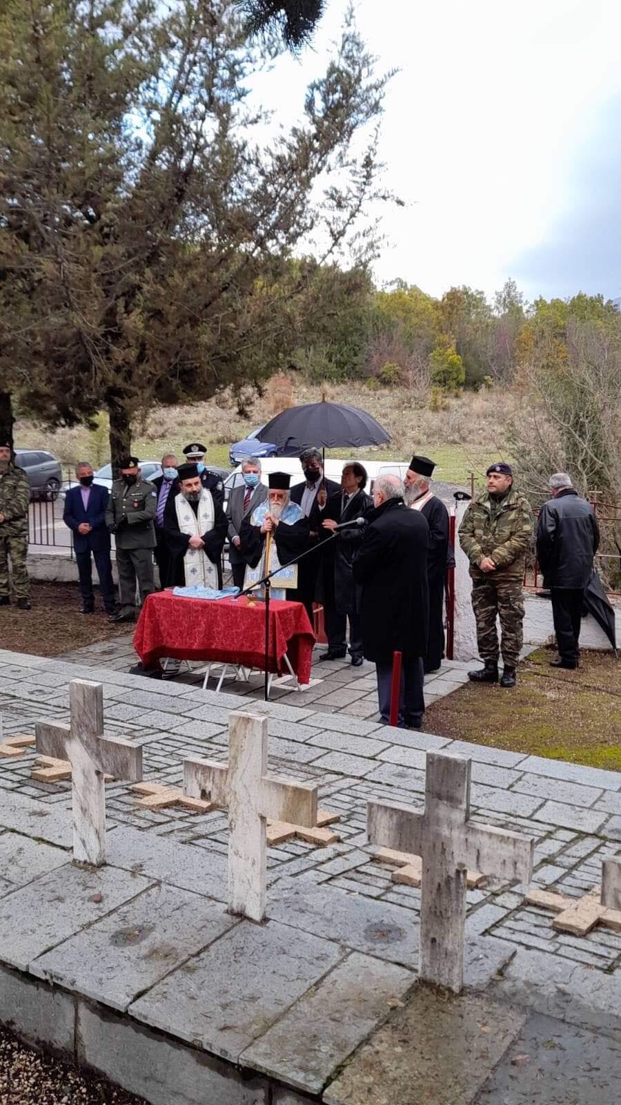 Επιμνημόσυνη δέηση για τους στρατιώτες του 2/39 Συντάγματος Ευζώνων που έπεσαν τον Νοέμβριο του 1940 στην μάχη της Γκραμπάλας – θέση «Βίγλα» Καλπακίου τελέσθηκε χθες Κυριακή 28 Νοεμβρίου 2021 από τον Μητροπολίτη Δρυϊνουπόλεως, Πωγωνιανής και Κονίτσης κ. Ανδρέα, παρουσία πολιτικών και στρατιωτικών εκπροσώπων.