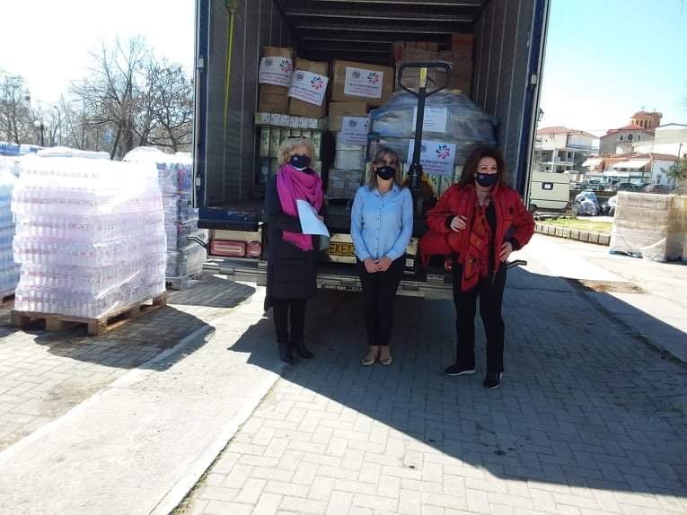Η υπεύθυνη της Ακτίνας Εθελοντισμού, Βούλα Αρτίκου Γουργολίτσα και η Δήμητρα Αβράμπου παρέδωσαν είδη τροφίμων και πρώτης ανάγκης προκειμένου να συνδράμουν τις ανάγκες των σεισμοπαθών.