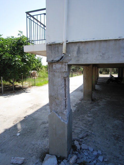 | Εμφανής η κακοτεχνία στην κατασκευή του σκελετού της πολυκατοικίας |