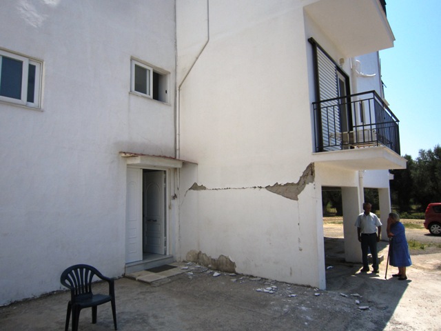 Όμως η κατασκευή της πολυκατοικίας δεν άντεξε στη μανία του εγκέλαδου με αποτέλεσμα να σημειωθούν σοβαρές ζημιές στον φέροντα οργανισμό του κτηρίου. Σήμερα μηχανικοί του ΤΑΣ έκαναν εκτεταμένους ελέγχους στην πολυκατοικία και συνέστησαν στους ενοίκους για τα επόμενα εικοσιτετράωρα να αποφύγουν την παραμονή στο κτήριο.