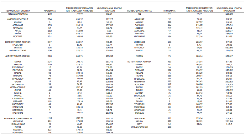 Τα νέα εργαστηριακά επιβεβαιωμένα κρούσματα της νόσου που καταγράφηκαν τις τελευταίες 24 ώρες είναι 12.108 , εκ των οποίων 61 εντοπίστηκαν κατόπιν ελέγχων στις πύλες εισόδου της χώρας. Ο συνολικός αριθμός των κρουσμάτων ανέρχεται σε 1.793.311 (ημερήσια μεταβολή +0.7%), εκ των οποίων 49.8% άνδρες. Με βάση τα επιβεβαιωμένα κρούσματα των τελευταίων 7 ημερών, 418 θεωρούνται σχετιζόμενα με ταξίδι από το εξωτερικό και 2.550 είναι σχετιζόμενα με ήδη γνωστό κρούσμα.