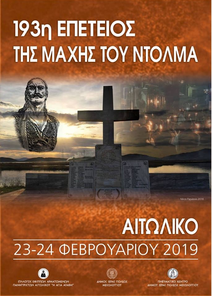 Σάββατο 23 και την Κυριακή 24 Φεβρουαρίου 2019 στο Αιτωλικό, οι εκδηλώσεις που είναι αφιερωμένες στα 193 χρόνια από την Μάχη του Ντολμά.