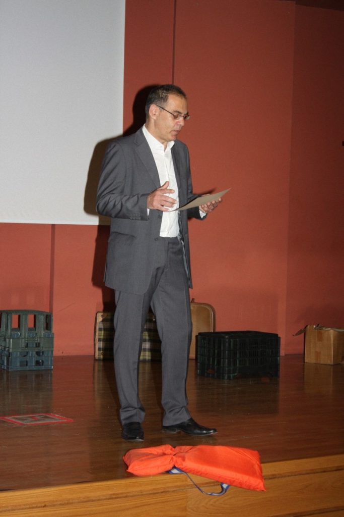 | Ο δ/της του 2ου Γυμνασίου Μεσολογγίου Παναγιώτης Ζαβιτσανάκης παρουσιάζει τους στόχους του προγράμματος που υλοποίησε το σχολείο |