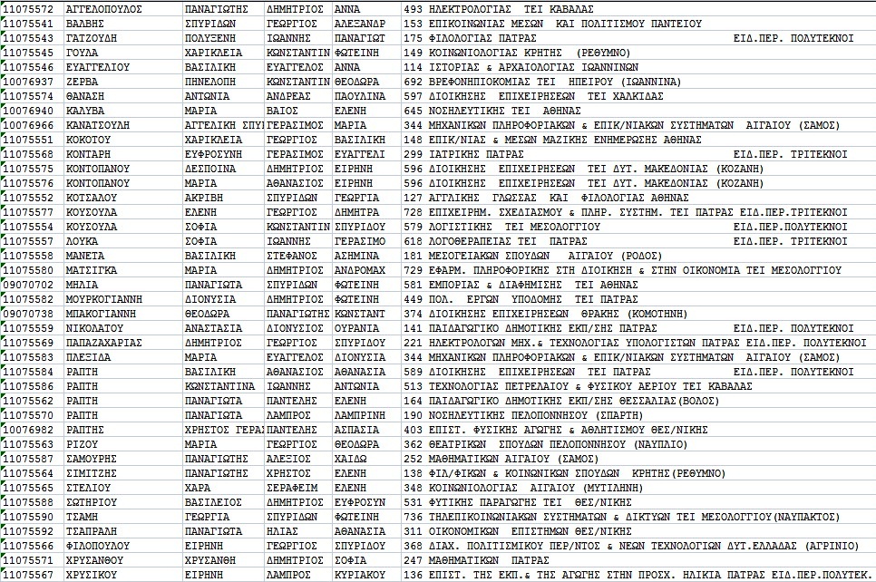 3. Όλοι οι επιτυχόντες του 2011 σε ΑΕΙ και ΤΕΙ από το Λύκειο Νεοχωρίου