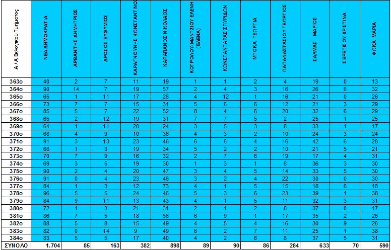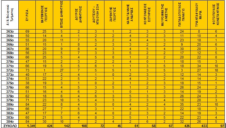 Ο Νίκος Καραπάνος συγκέντρωσε τον μεγαλύτερο αριθμό ψήφων (σ.σ. 898) μεταξύ όχι των υποψηφίων της ΝΔ αλλά όλων των κομμάτων στην πόλη του Μεσολογγίου για να ακολουθήσουν στο ίδιο κόμμα ο Μάριος Σαλμάς με 633 και η Μαρία Φωκά με 590. (Κάντε κλικ στην εικόνα).