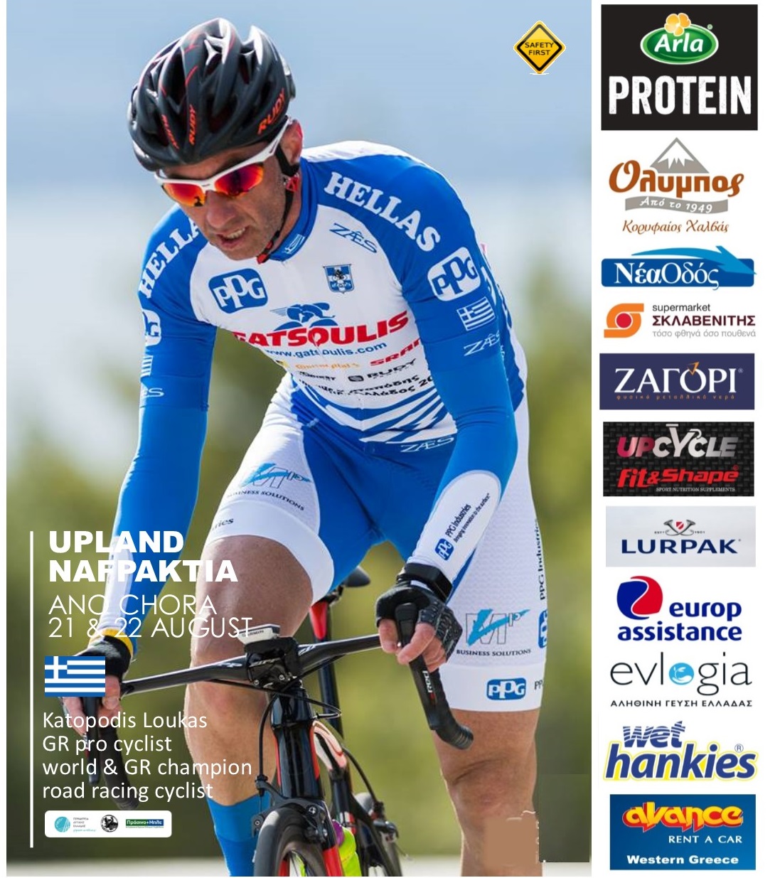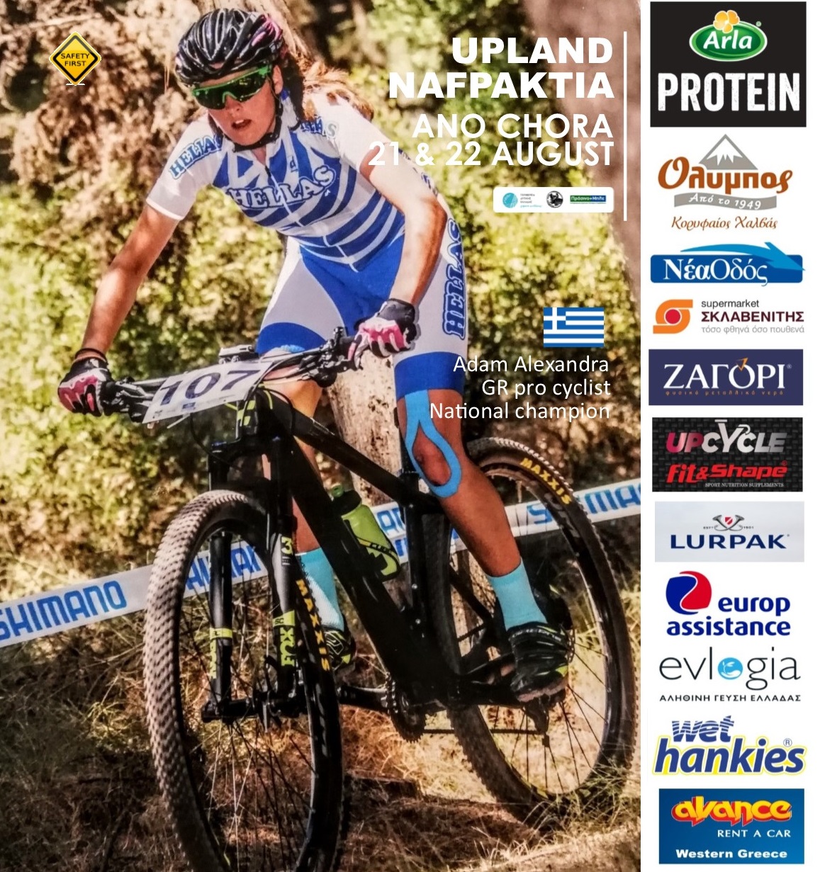 Η δράση υποστηρίζεται από εταιρίες χορηγούς και προϊόντα: Arla Protein & LURPAK βούτυρο της ARLA Foods Hellas SA, Όλυμπος χαλβάς & TAXINI της Παπαγιάννης ΑΕΒΕ, Νέα Οδός ΑΕ διαχειριστή της Ιόνιας οδού, Σκλαβενίτης ΑΕE super markets, Wet Hankies αντιμικροβιακά μαντηλάκια της MEGA ΑΕ, Up Cycle – fit and shape συμπληρώματα διατροφής, φυσικά προϊόντα EVLOGIA, μπανάνες Dole, Europ Assistance ειδική στη προστασία και ασφάλεια, Avance Travel Δυτικής Ελλάδας και DEPEND Sports marketing Services., ενώ συμμετέχουν ενεργά το Κέντρο Υγείας Άνω Χώρας, το Δασαρχείο, η Τροχαία και η Πυροσβεστική Ναυπάκτου, η ομάδα διάσωσης Μεσολογγίου ΕΟΕΔ, καθώς και η τοπική κοινότητα και ο πολιτιστικός σύλλογος Άνω Χώρας.