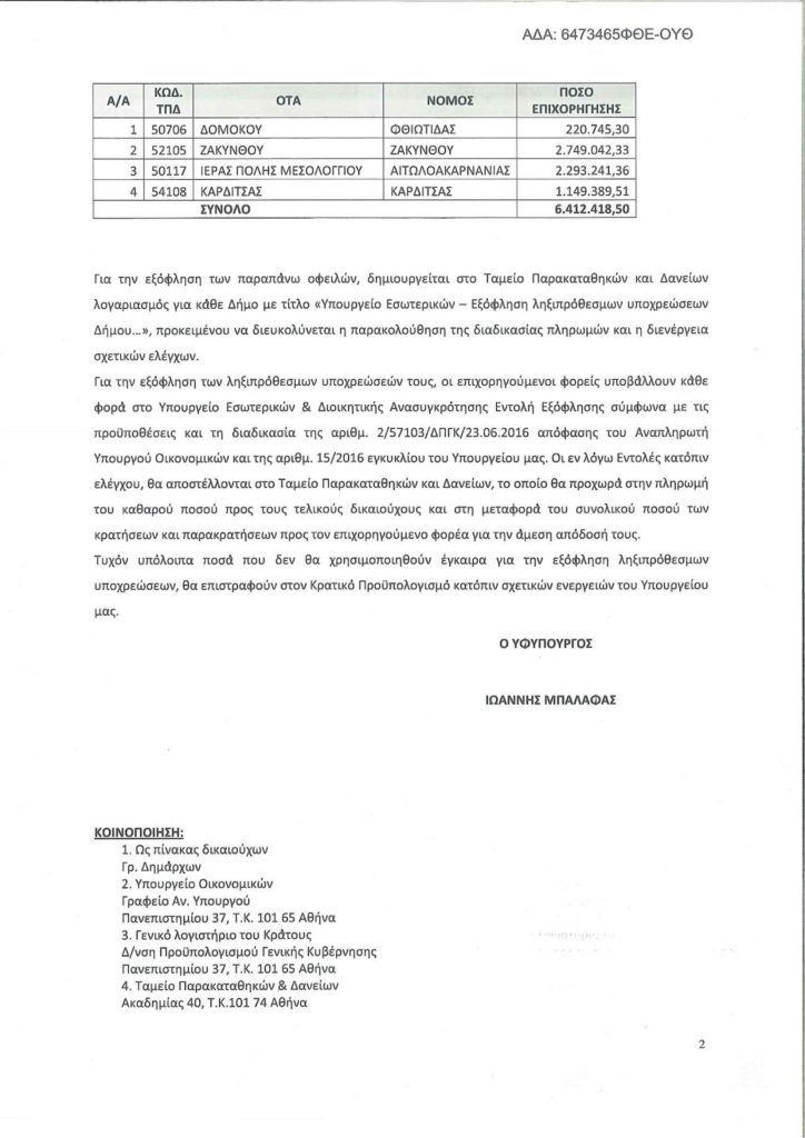 ΑΔΑ: 6473465ΦΘΕ-ΟΥΘ απόφαση του Υφυπουργού Εσωτερικών & Διοικητικής