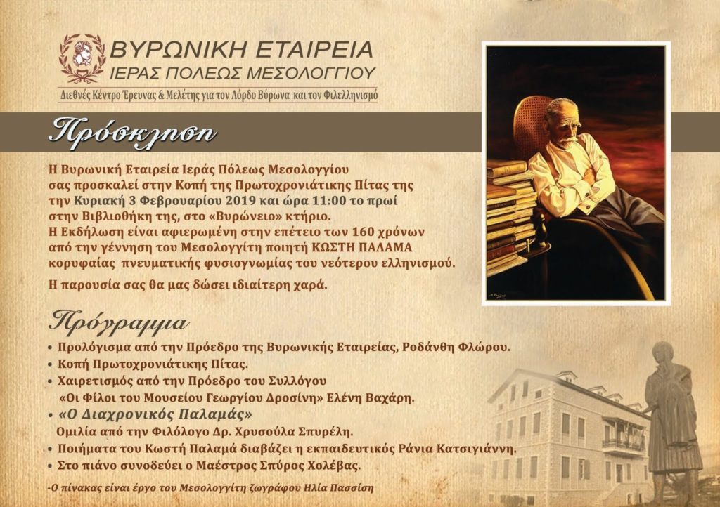 3. Σήμερα Κυριακή 3/2/2019 η εκδήλωση για τη Βασιλόπιτα της Βυρωνικής Εταιρείας Μεσολογγίου