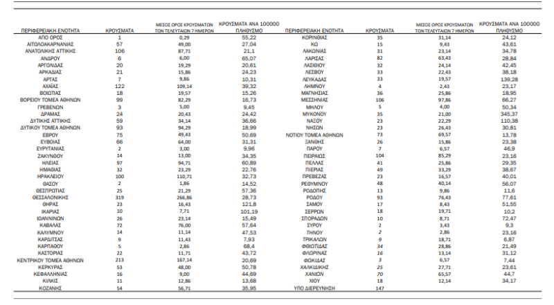 Συγκεντρωτικά στοιχεία της εβδομάδας 16 Αυγούστου 2021 – 22 Αυγούστου 2021