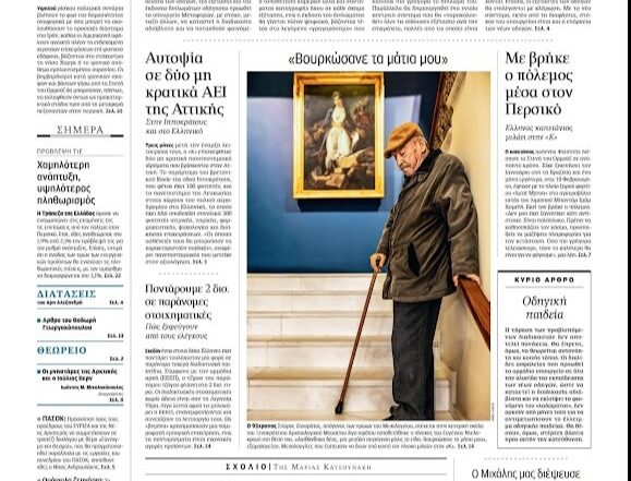 Στο πρωτοσέλιδο της «Καθημερινής» ο μπάρμπα Σπύρος – Η εικόνα του Μεσολογγίου που συγκίνησε
