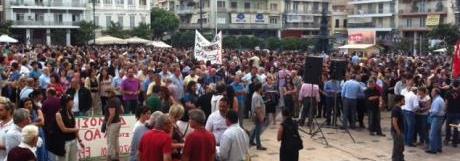 στην Πλατεία Γεωργίου, στην Πάτρα για να διαμαρτυρηθούν για το κλείσιμο του εκεί