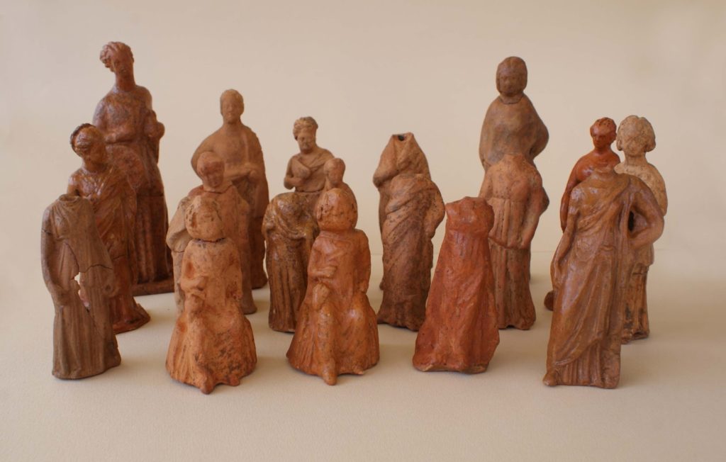 Τη μεγαλύτερη ομάδα ευρημάτων αποτελούν τα ειδώλια, από τα οποία ελάχιστα μόνο σώζονται ακέραια και κυριαρχούν οι γυναικείες μορφές. Πολλές μορφές συνδέονται ερμηνευτικά με τελετουργίες, ενώ αρκετά είναι και τα ειδώλια ζώων (χοίρων, βοοειδών, κριών, αλόγων), και πτηνών, κυρίως περιστεριών. Στο υλικό αυτό ανιχνεύονται στοιχεία από τη λατρεία της Αφροδίτης και του Διονύσου, ενώ για πρώτη φορά στην περιοχή, και αυτό είναι εξαιρετικά σημαντικό, αναγνωρίζονται στοιχεία από τον κύκλο της Δήμητρας και της Κόρης. Η έρευνα στην περιοχή συνεχίζεται.