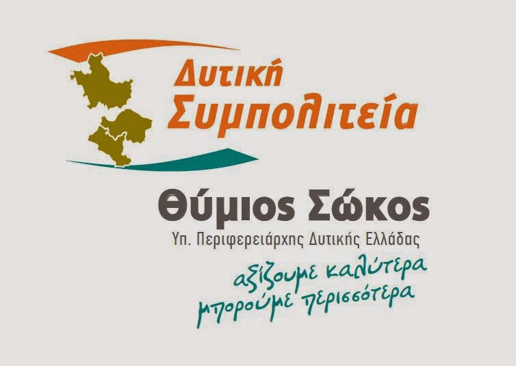 «ΔΥΤΙΚΗ ΣΥΜΠΟΛΙΤΕΙΑ» είναι ο τίτλος του συνδυασμού του υποψηφίου περιφερειάρχη Δυτικής Ελλάδας, Θύμιου Σώκου, που παρουσιάστηκε σήμερα (Παρασκευή 11 Απριλίου 2014) στην Πάτρα στην «Αγορά Αργύρη».