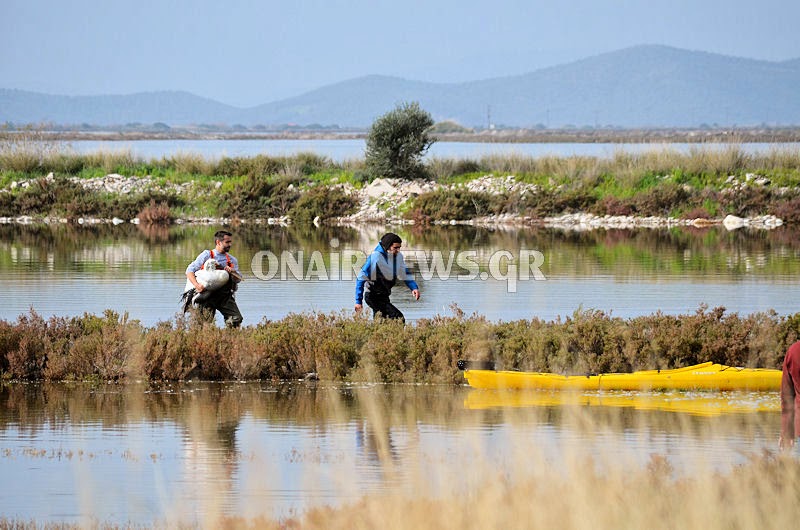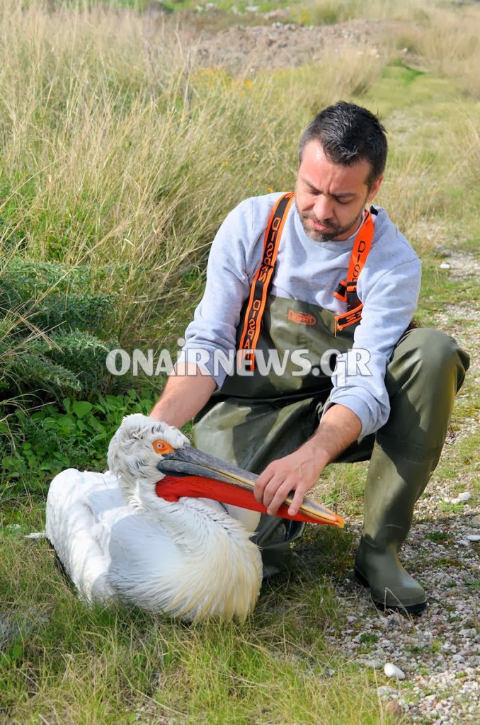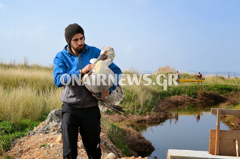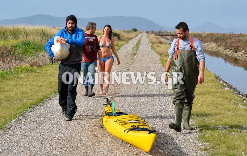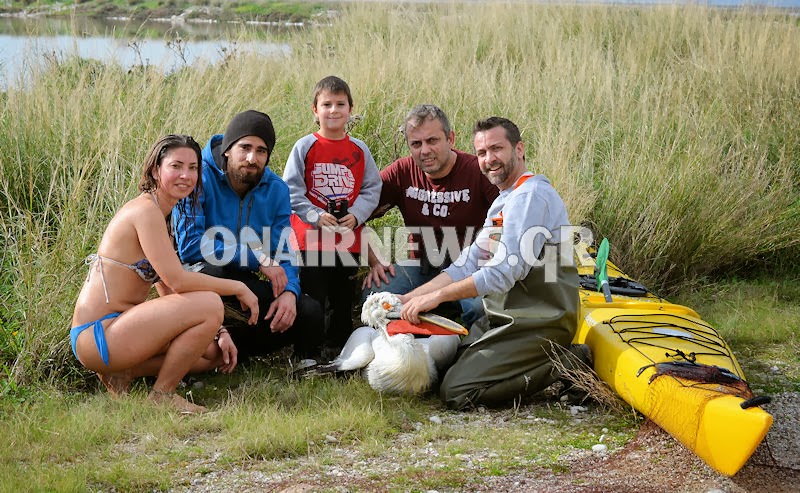Παρατήρησαν χθες τον τραυματισμένο αργυροπελεκάνο και σήμερα ο Νικος Νούλας,ο Γιώργος Λαμπρόπουλος,η Ελίνα Γκανιάτσου και ο Ναυτικός όμιλος με τον Μάκη Κοτσίρη οο οποίος έφερε και το κανό ,έστησαν επιχείρηση να πλησιάσουν τον αργυροπελεκάνο μιας και δεν είναι εύκολο άνθρωπος να πλησιάσει αυτά τα πουλιά. Απο την θάλασσα με το κανό ο Γιώργος Λαμπρόπουλος προσπαθούσε να κατευθύνει το πληγωμένο πουλί προς την ξηρά που ήταν ο Νίκος Νούλας και ο Μάκης Κοτσίρης και παράλληλα μέσα στην θάλασσα κολυμπούσε και η Ελίνα Γκανιάτσου που προσπαθούσε μέσα στα παγωμένα νερά να πλησιάσει απο άλλη μεριά τον αργυροπελεκάνο.
