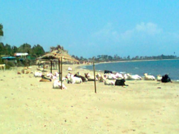 | Αγελάδες κάνουν ηλιοθεραπεία στην πλαζ του Λούρου στις Οινιάδες |