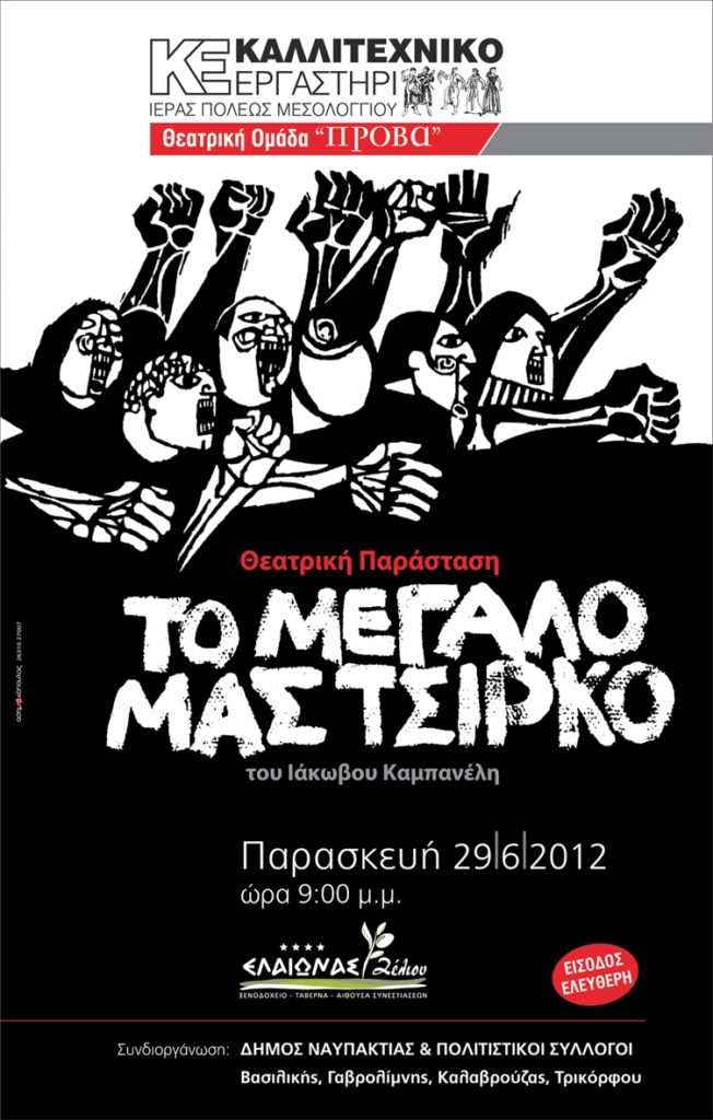 του Μαΐου, η θεατρική ομάδα «ΠΡΟΒΑ» του Καλλιτεχνικού Εργαστηρίου Μεσολογγίου