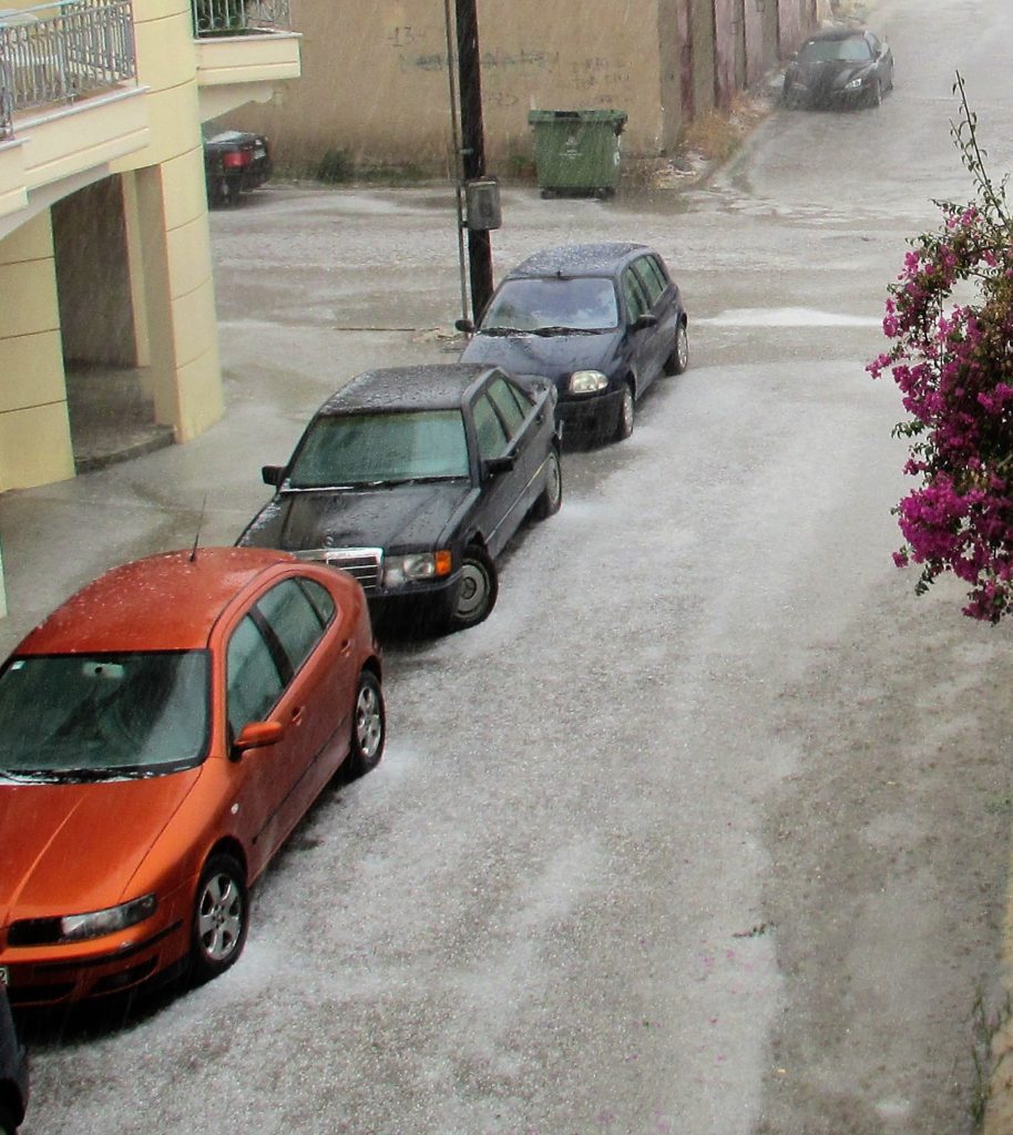 Μεσολογγίου το μεσημέρι της Τετάρτης από την σφοδρή χαλαζόπτωση που έπληξε την