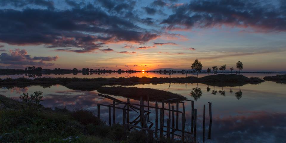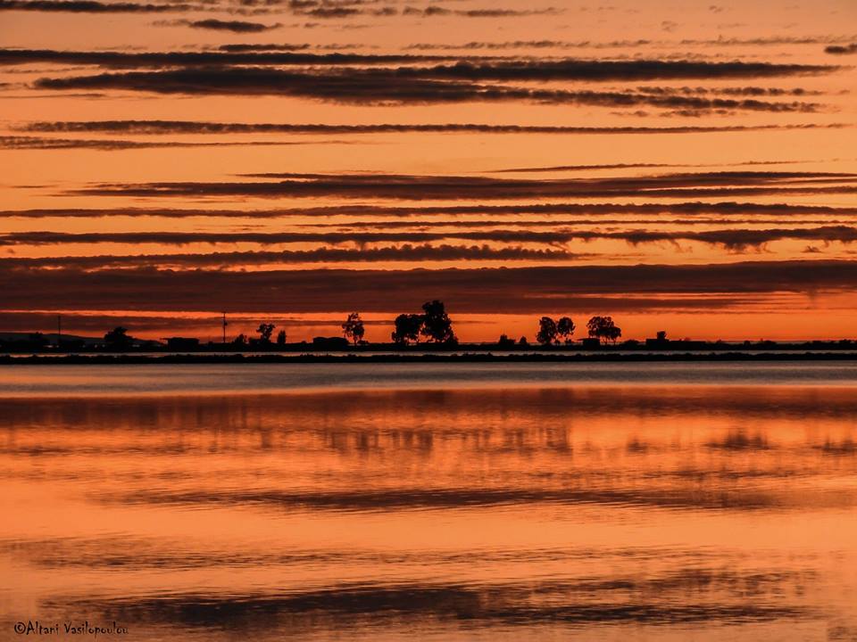 ουρανό με ταυτόχρονες εντυπωσιακές ανακλάσεις στα ήρεμα νερά της λιμνοθάλασσας